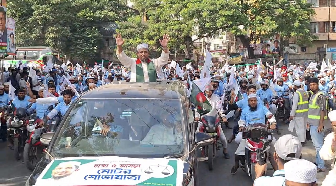 ঢাকা-৫ আসনে বাংলাদেশ জামায়াতে ইসলামীর একটি বৃহৎ মোটরসাইকেল শোভাযাত্রা অনুষ্ঠিত হয়েছে। বাংলাদেশ জামায়াতে ইসলামীর কেন্দ্রীয় মজলিসে শুরা সদস্য ও ঢাকা মহানগরী দক্ষিণের সহকারী সেক্রেটারি, ঢাকা-৫ আসনে দলীয় মনোনীত সংসদ সদস্য প্রার্থী মোহাম্মদ কামাল হোসেনের নেতৃত্বে শুক্রবার (৭ নভেম্বর) সকাল ১০টায় যাত্রাবাড়ীর শহীদ ফারুক রোড থেকে শোভাযাত্রাটি শুরু হয়।