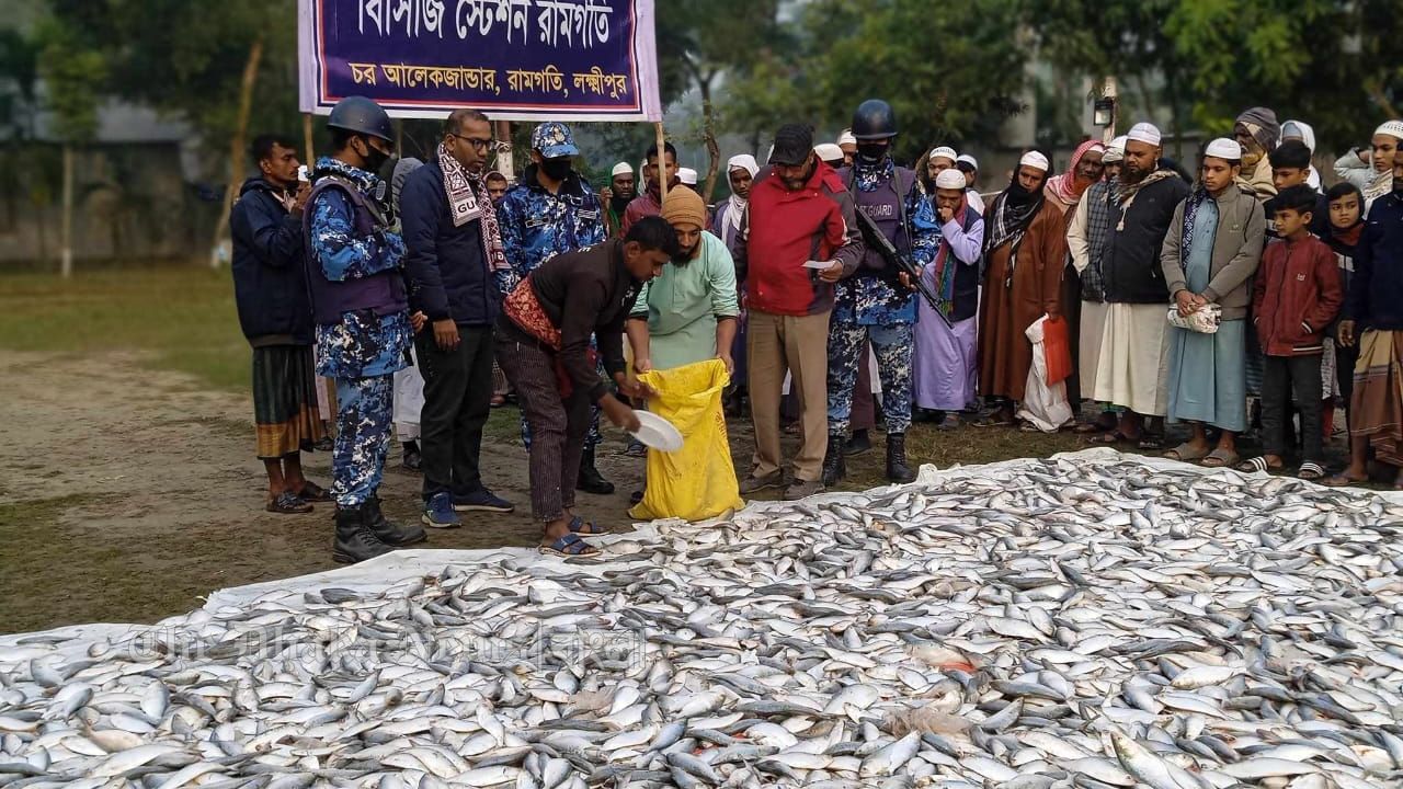 লক্ষ্মীপুরের রামগতি উপজেলায় বাংলাদেশ কোস্টগার্ডের চালানো বিশেষ অভিযানে প্রায় চার লাখ টাকা বাজারমূল্যের নিষিদ্ধ জাটকা ইলিশ উদ্ধার করা হয়েছে। বৃহস্পতিবার গভীর রাতে গোপন তথ্যের ভিত্তিতে উপজেলার টাংকির ঘাট এলাকায় এ অভিযান পরিচালনা করা হয়।
